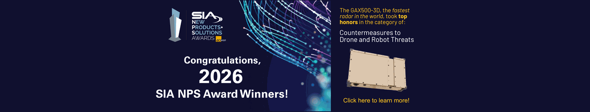 See the SIA NPS Award-winning GAX500-3D powered by Compact Holographic 3D (CH3D™) Radar technology go head to head with a high resolution camera in tracking 60 MPH drone intrusions. The GAX500-3D: